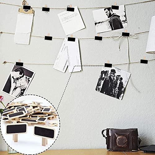 50 Pezzi Mini Lavagna Clip, Mini Lavagnetta Nera in Legno, Mini Lavagna Legno Messaggio, Lavagnette Promemoria Mini, per Cartellino del Prezzo, Bacheca per Appunti con Foto, Etichetta per Feste