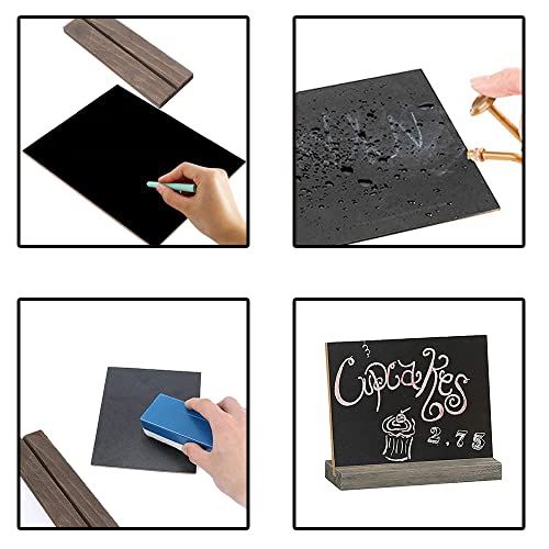 4 Pezzi Mini Lavagna Legno, Mini Lavagna Tavolo Segni, Bacheca Messaggi, Vintage Legno Cancellabile con Base in Legno, per Decorazione Eventi a Scuola, Matrimoni, Compleanni, Bar, Feste (Nero)