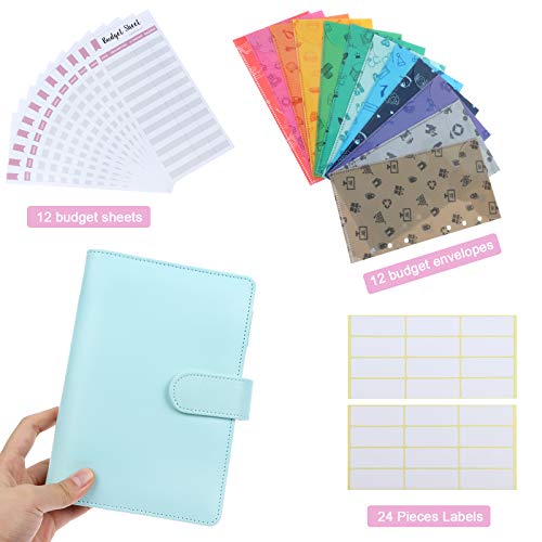 28 pezzi PU Leather Budget Planner Organizzatore Cash Busta System per Budget Buste Budget 12 Pattern Budget Buste 12 Pezzi Fogli di Spesa Budget con 48 Pezzi Etichette per Bill Planner