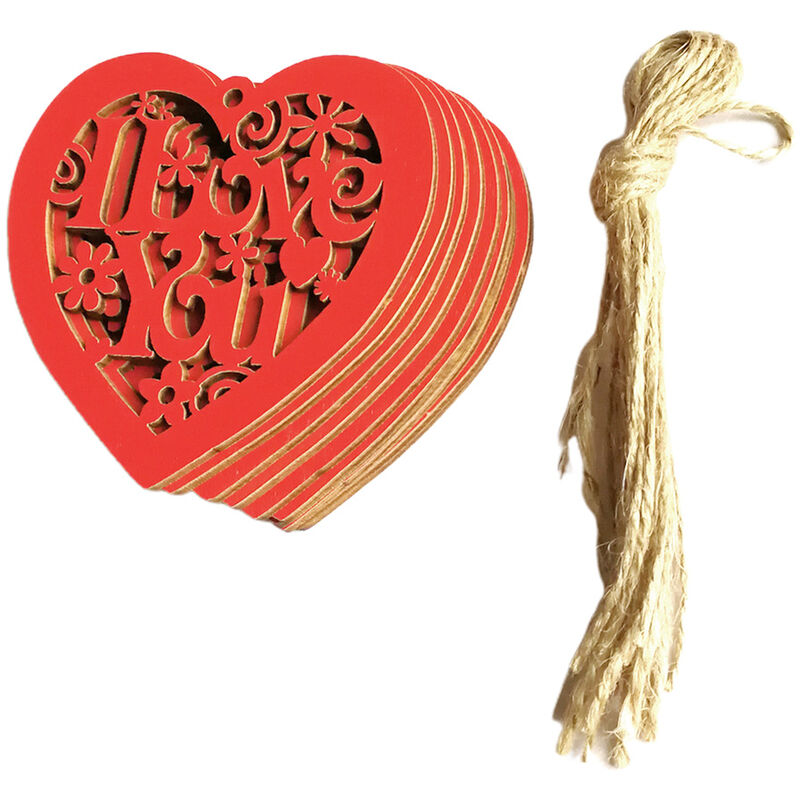 Le fette di legno a forma di cuore da 10 pezzi sono un design cavo di lettere "Ti amo" e un raffinato motivo floreale. Con il vivido colore rosso e lo spago, il cuore in legno e perfetto per appendere gli ornamenti per il matrimonio per aggiungere romanticismo. Caratteristiche: Una fetta di legno a forma di cuore con incavo "I Love You" e motivi floreali possono attirare l'attenzione della gente e aggiungere romanticismo. Design cavo, bifacciale liscio e piatto, squisita fattura. Materiale in legno, sottile, leggero e resistente. Il materiale in legno rende la pittura naturale, pronta per colorare e decorare. Puo essere usato come etichette regalo, album per ritagli, ornamenti di nozze, accessori artigianali fai-da-te. Adatto a matrimonio, compleanno, anniversario, San Valentino, ecc. specifiche tecniche: Materiale: compensato Colore rosso Quantita: 10 pezzi Dimensione dell'articolo: 80 * 80 * 3mm / 3,15 * 3,15 * 0,12 pollici Peso del pacchetto: 51,2 g / 1,81 once Formato del