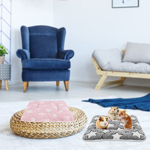 2 Pezzi Letto in Peluche per Piccoli Animali,Calda Coperta per Cani Gatto Cuscinetto Imbottito Pet Pad Soffice Materassino per Porcellino d'India Criceto Coniglio Gattino, 30 x 30cm (Grigio, rosa)