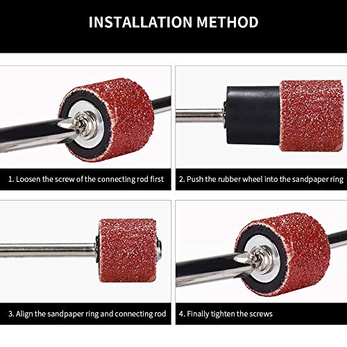 Facile da installare: assicurarsi che il tamburo sia stato serrato e che il mandrino sia dotato di un cuscinetto in gomma autoespandibile, in modo che il nastro abrasivo sia saldamente vicino all'albero del tamburo e si ottiene una finitura migliore.