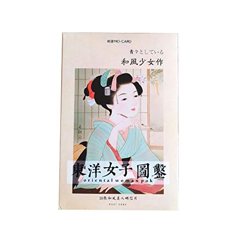 30 pezzi 1 Set Toyo Libro Illustrato da Donna Cartolina Kimono Girl Copia Dipinta a Mano Biglietto D'auguri Biglietto con Messaggio di Benedizione Cartolina in Scatola (Kimono Girl)