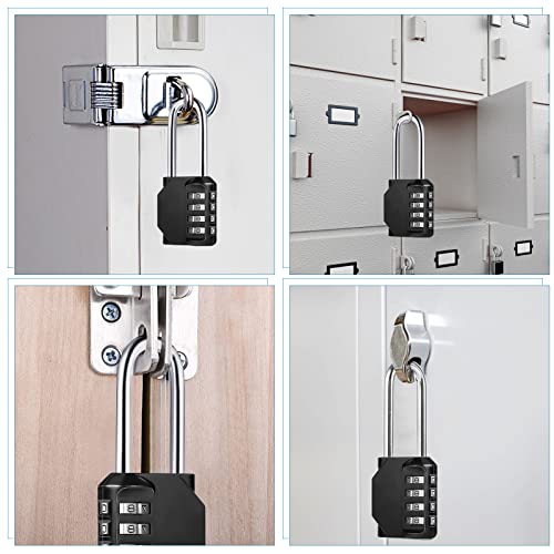2 Pezzi Lucchetto Combinazione a 4 Cifre Lungo, Lucchetto Armadietto Metallo Lucchetto con Combinazione Impermeabile per Armadietto Bagaglio Palestra Recinzioni (Nero)