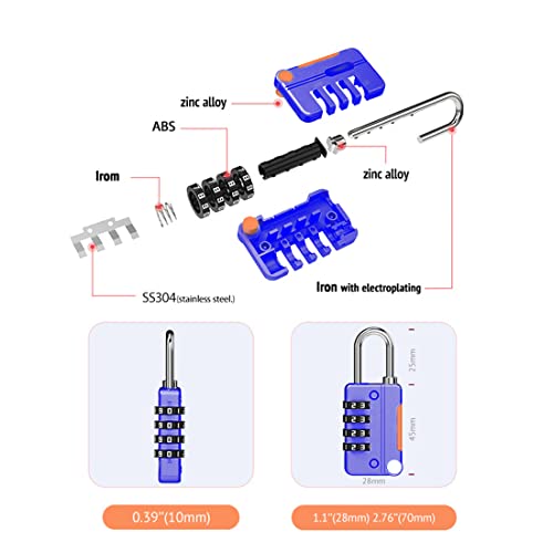 Materiale: Il lucchetto è realizzato in materiale in lega di zinco che è stente alle intemperie, a prova di ruggine, impermeabile, stente ai tagli, durevole e non si sbiadisce facilmente con un uso a lungo termine. Il robusto cordino in acciaio rivestito in plastica è resistente alla ruggine e ai graffi.