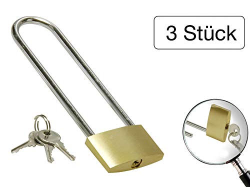 3 pezzi Lucchetto lungo arco 40 X 105 mm in ottone con 3 chiavi