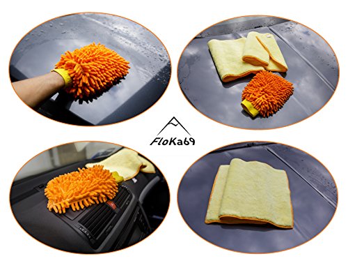 ✔ offerta: il set è composto da due auto pulizia saugstarken vestiti in giallo (30 x 60 cm) e un auto guanto (25 x 17 cm) in arancione con extra lunga e morbida microfibra.