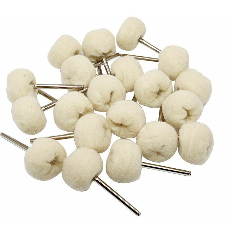 Materiale - Feltro di lana, buone prestazioni, buona fattura, forte e durevole. Nota: il mandrino dei tamponi per lucidatura è di 3 mm. Compatibile con tamponi per lucidatura per mandrino da 3 mm con la maggior parte degli utensili rotanti, lucidatrici, trapani manuali, ecc. Contenuto: 20 tamponi per lucidatura. Molteplici usi: rende i prodotti lucidi puliti e lucenti, ideali per gioielli, orologi, stampi vari, vetro, attrezzature mediche, superfici metalliche, ecc. 【Installazione】Installato sulla smerigliatrice elettrica. Adatto per sculture in legno, sculture in giada, sculture in avorio, ecc.