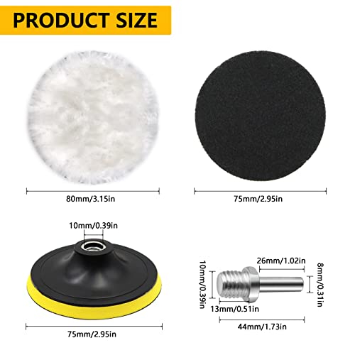 【Il set include】5 x Tamponi Lucidatura Lana (80mm/3.15 Zoll), 1 x M10 Adattatore, 1 x Pad Dischi. passend für M10 Bohrer, forniamo un numero sufficiente di tamponi di lucidatura in lana d'agnello da utilizzare e sostituire.