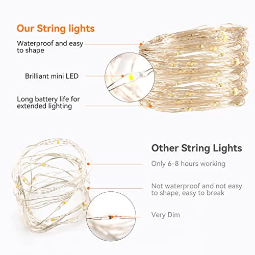 ✨【Sicuro e Facile da Fai-da-te】 Luci led batteria sono realizzate con filo d'argento morbido di alta qualità, il consumo di energia del LED è estremamente basso, anche se viene utilizzato per molto tempo, non si riscalda, è molto sicuro e a risparmio energetico. Il filo d'argento è forte e durevole, non si rompe o si danneggia facilmente e può essere modellato in qualsiasi forma tu voglia o messo in una bottiglia.