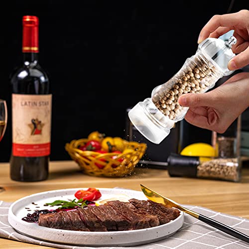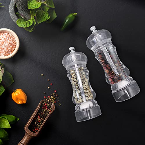 2 Pezzi Macina Pepe e Sale, Macinapepe Manuale Professionale Acryl Trasparente, Macinasale con Ceramica Finezza Regolabile per Sale Marino, Finocchi, Spezie, Erba