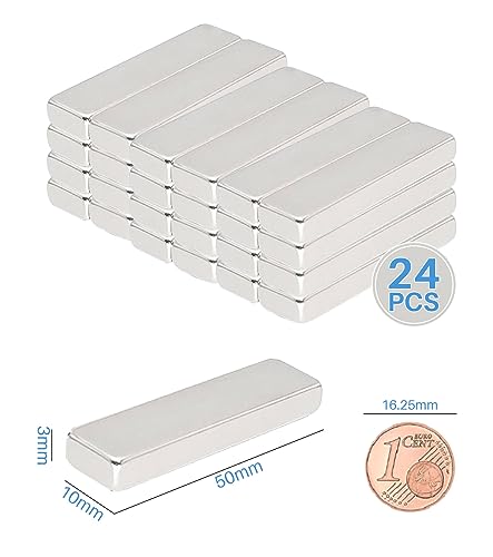 24 pezzi Magneti al Neodimio, Forte Magnete, Rettangolo Potenti Magneti per Frigoriferi, Cucina, Officina, Uffici Esperimenti Scientifici, 50X10X3 mm