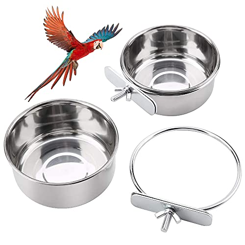 2 Pezzi Mangiatoia per Uccelli in Acciaio Inossidabile, Mangiatoia per Pappagalli, Ciotola da Appendere per Uccelli, Mangiatoia per Uccelli con Attacco a Vite per Gabbia per Piccoli Animali(10, 12cm)
