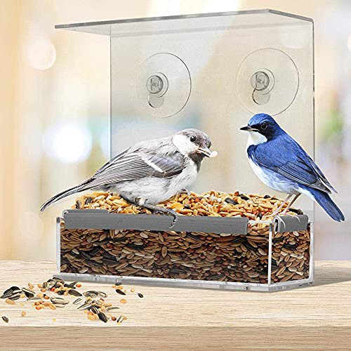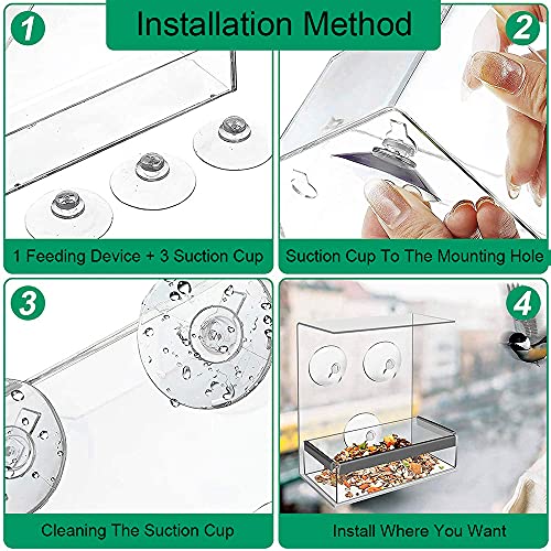 2 Pezzi Mangiatoia per Uccelli Trasparente, Mangiatoia per Uccelli Acrilico, Mangiatoia per Uccelli Rimovibile, con Vassoio Rimovibile Ventose, per Giardino Esterno Cortile