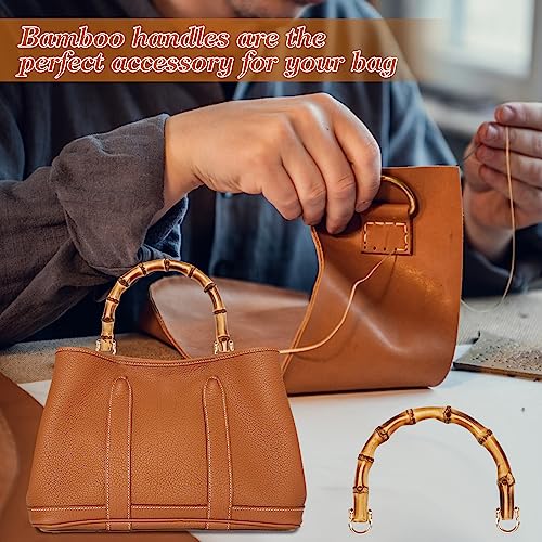 4 Pezzi Manici per Borse in Bambu, Manici per Borse Uncinetto Fai da Te, Manici Bamboo per Borse con 8 Oro Manici di Ricambio e Cacciavite Phillip (Materiale in bambù)