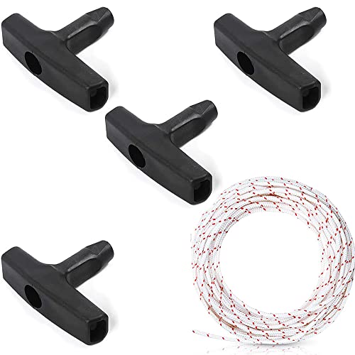 4 Pezzi Manico di Avviamento, 1 pezzi Corda per avviamento a Strappo da 15 m, Corda di Avviamento, Recoil Starter Maniglia, Avviamento a Strappo con Impugnatura, per Tosaerba, Motori a Benzina, Motori
