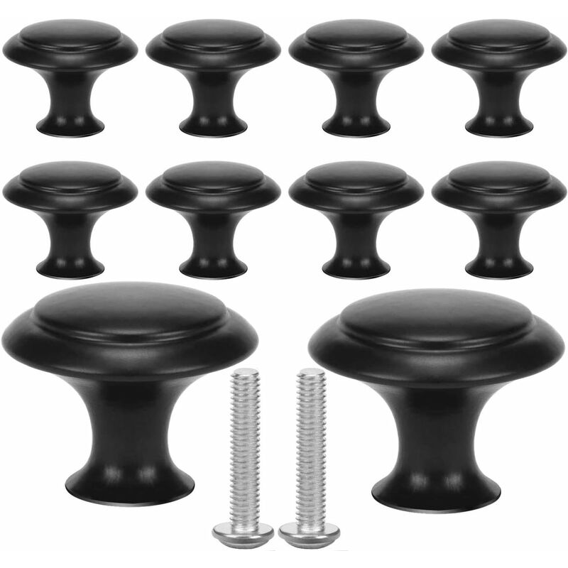 Contenuto della confezione: 10 pomelli per mobili neri. Diametro 27mm, Diametro Base: 13mm - Altezza: 20mm. Lunghezza del: 23 mm Materiale: il pomello della porta nero è realizzato in lega di zinco premium, solido, inossidabile e resistente Ampia gamma di applicazioni: il pomello della porta è nero cassetto connt grande per cucine, armadi, cassetti, cestini, cassettiere, armadi, camerette, ecc. Il design rotondo evita lesioni ai bambini, più sicuro Facilità di montaggio: l'installazione dei pomelli rotondi per mobili è molto semplice. Basta usare un cacciavite per assemblare facilmente il cassetto Colore: nero