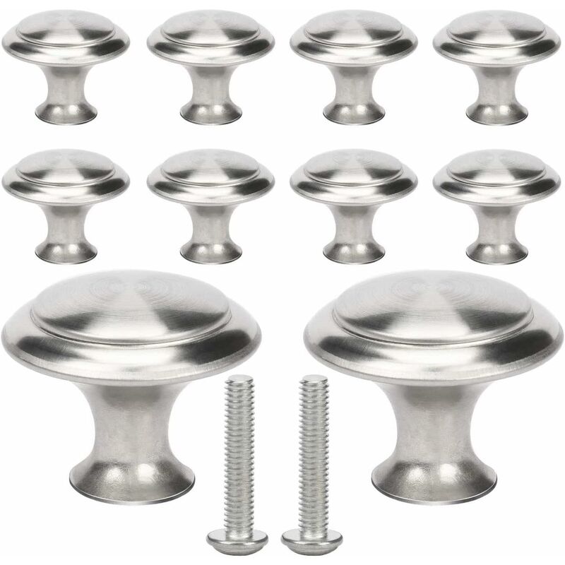 Contenuto della confezione: set di 10 pomelli per mobili. Diametro 27mm, Diametro Base: 13mm - Altezza: 20mm. Lunghezza del: 23 mm Materiale: il pomello della porta è realizzato in lega di zinco di alta qualità, solido, inossidabile e resistente Ampia gamma di applicazioni: il pomello della porta è argento cassetto è ideale per cucine, armadi, cassetti, cestini, cassettiere, armadi, camerette, ecc. Il design rotondo evita lesioni ai bambini, più sicuro Facilità di montaggio: l'installazione dei pomelli rotondi per mobili è molto semplice. Basta usare un cacciavite per montare facilmente il cassetto Colore: argento