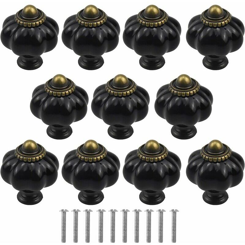 Il pacchetto include - 10 pomelli vintage per armadi a forma di zucca e 10 viti, quantità sufficiente, adatti a tutti i tipi di ante di cassetti, ante di armadi, ante di armadi e armadi, ecc. 【Durevole e liscio】Il La maniglia del cassetto a foro singolo è realizzata in acrilico e lega di zinco, impermeabile, antiruggine e resistente. Lucidato con cura, senza bordi e angoli, liscio e non tagliente, sicuro per i bambini. Consente di aprire e chiudere cassetti, ante di armadi, ecc. senza sforzo. 【Squisito e carino】 La maniglia della porta ha un bel design a forma di zucca e un elegante colore nero/chiaro, che è sia pratico che decorativo. Il design eccezionale può abbinarsi a vari stili di arredamento. Può essere la ciliegina sulla torta per la decorazione della tua casa. 【Facile da installare】 Viene fornito con 10 viti, non è necessario acquistare separatamente gli accessori per le maniglie dei cassetti. (Il diametro della filettatura della manopola è di 4 mm e la lunghezza della