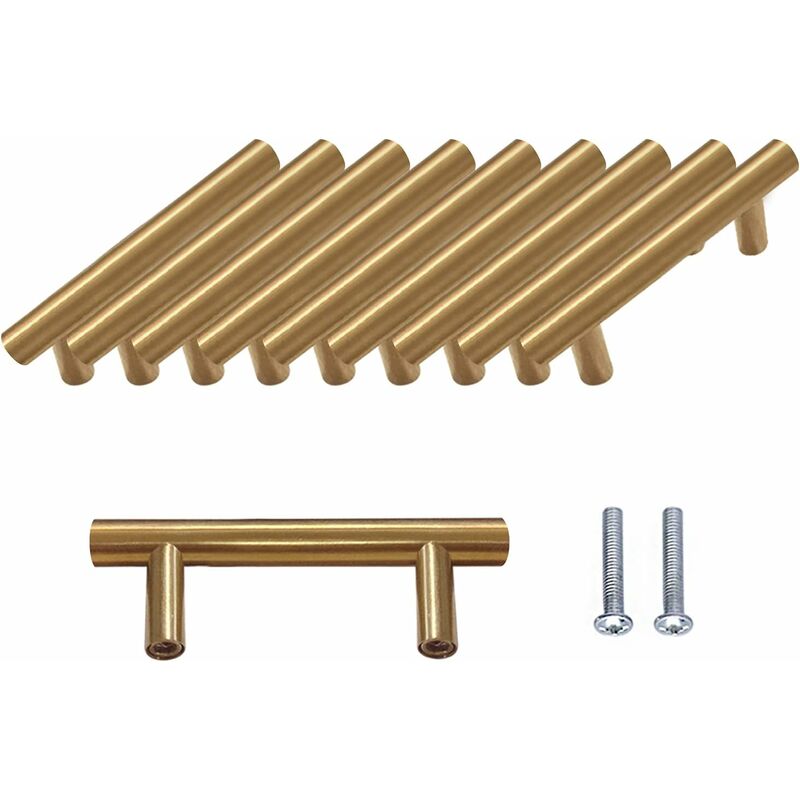 Set di 10 maniglie in oro, lunghezza 100 mm, interasse 64 mm, altezza 32 mm, diametro 10 mm. I nostri manici sono realizzati in acciaio inossidabile di alta qualità con una superficie spazzolata per una maggiore durata. Il design semplice gli conferisce un aspetto chic e le linee piccole ed eleganti rendono i tuoi mobili molto chic. Questa maniglia è adatta a tutti i mobili in camera da letto, bagno, cucina, soggiorno, dona ai tuoi mobili un nuovo look. Fornito con viti, preforate per mantenere l'integrità della superficie e una facile installazione anche da parte di persone inesperte.