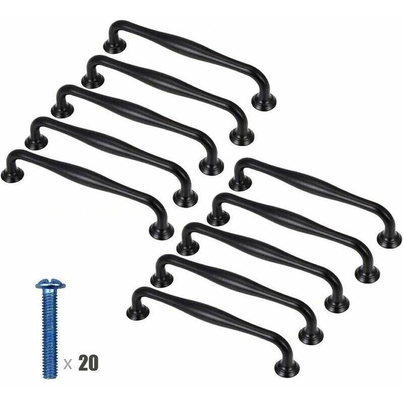 Maniglie per mobili in lega di alluminio, sicure ed ecologiche, elevata capacità portante, non facile da sbiadire, resistenza all'ossidazione, resistenza alla corrosione, durevole.Perfetto per porte o armadi, guardaroba, armadi, cassettiere e altri mobili decorati.Una bella finitura opaca può dona eleganza e modernità alla tua cucina, bagno, camera da letto, ufficio. Facile da pulire e setoso al tatto. Con custodia, è comodo da trasportare e riporre sempre e ovunque. Specifiche Materiale: lega di alluminio Quantità: 10 Lunghezza: 115 mm Distanza fori: 96 mm Altezza: 33 mm Lunghezza vite: 22 mm Colore: nero Contenuto della confezione 10 maniglie nere per anta dell'armadio 20 viti