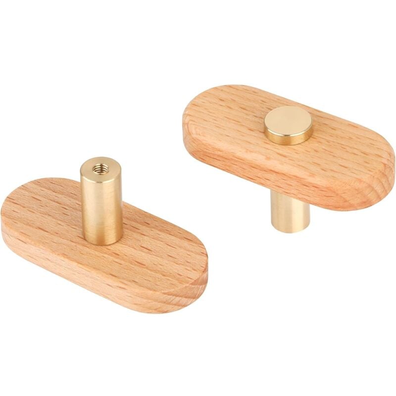 Un set di 6 maniglie per mobili, lunghezza totale 55 mm, larghezza 25 mm, altezza 30 mm, con viti. L'accostamento tra ottone e legno di faggio è semplice e ricco di design, donando alla maniglia un tocco moderno. Queste maniglie sono adatte a tutti i tipi di mobili come armadi, cassettiere, cassetti, scaffali, ecc.