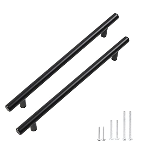 10 pezzi di maniglie per cassetti per mobili con maniglia a botte a T per armadio da cucina in acciaio inossidabile, (foro centrale da 192 mm/252 mm di lunghezza, nero)