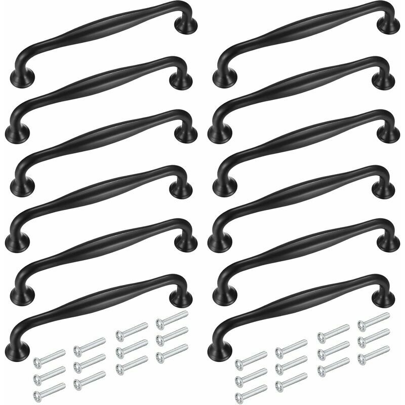 Maniglie per mobili in lega di alluminio, sicure ed ecologiche, elevata capacità portante, non facile da sbiadire, resistenza all'ossidazione, resistenza alla corrosione, durevole.Perfetto per porte o armadi, guardaroba, armadi, cassettiere e altri mobili decorati.Una bella finitura opaca può dona eleganza e modernità alla tua cucina, bagno, camera da letto, ufficio. Facile da pulire e setoso al tatto. Con custodia, è comodo da trasportare e riporre sempre e ovunque. Specifiche Materiale: lega di alluminio Quantità: 12 Lunghezza: 115 mm Distanza fori: 96 mm Altezza: 33 mm Lunghezza vite: 22 mm Colore: nero Contenuto della confezione 12 maniglie nere per porta dell'armadio 24 viti