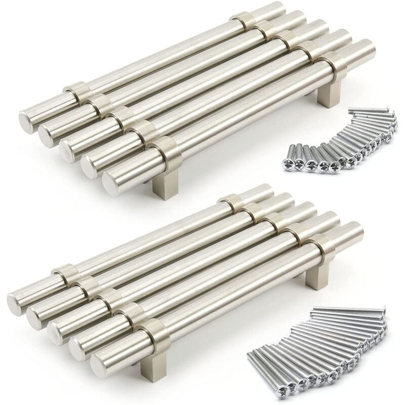 Un set di 10 maniglie in acciaio inossidabile con viti incluse per una facile installazione. -La lunghezza di ciascuna maniglia è di 190 mm e la distanza tra i fori è di 128 mm. -L'aspetto minimalista è molto moderno, adatto a tutti gli stili di cassetti, armadi, armadi e altri mobili.