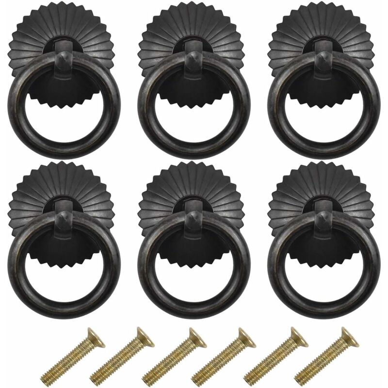 Contiene 6 maniglie per mobili nere e 6 viti, il diametro interno dell'anello è di 30 mm. Anello maniglia per mobili vintage, realizzato in ottone resistente all'usura per una lunga durata. Facile da installare, devi solo utilizzare i gadget domestici per installarlo facilmente. Perfetto per armadi, scrivanie, credenze, scarpiere e altri mobili.
