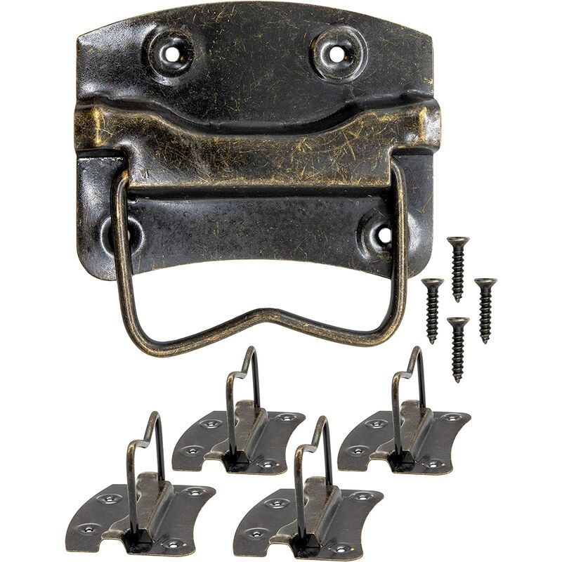 Set di 4 mini maniglie pieghevoli per cassapanche, scatole o spingitori, madie, ecc. - Design: bronzo - Aspetto da casa di campagna invecchiato Maniglie pieghevoli in stile antico, design vintage, stile casa di campagna, design retrò, stile casa di campagna Lavorazione di alta qualità in design antico, perfetta per mobili antichi