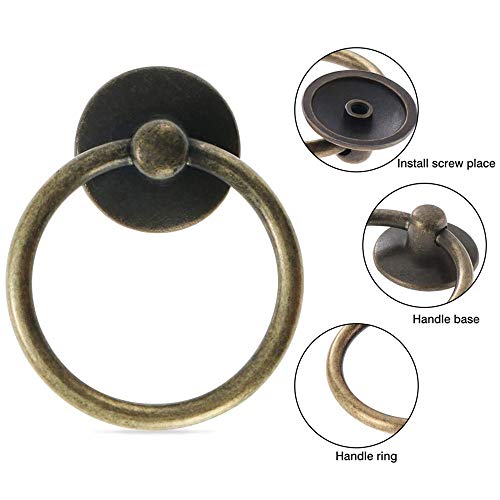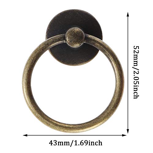 6 Pezzi Maniglie Rotonde Antiche Dell'Armadio, Maniglie per Cassetti Vintage, Stile Semplice Lega Zinco Manico Ad Anello Retrò Con Viti per Mobili, Armadietti, Cassettiere, Cassetti (Bronzo Antico)