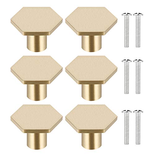 Hejo 6 Pezzi Manopole in Ottone,Pomelli in Ottone Puro a Foro Singolo,Ottone Manopole per Mobili, Manopole in Ottone Massiccio Adatta per Cucina,Bagno,Cassetti,Salotto