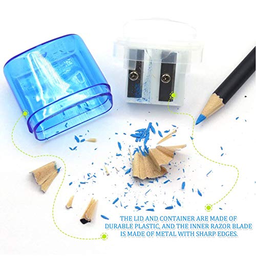 12 Pezzi Manuale Temperamatite Doppio Foro, Temperamatite con Contenitore, Quadretti Temperamatite, per Ufficio Casa Forniture (4 Assortiti)
