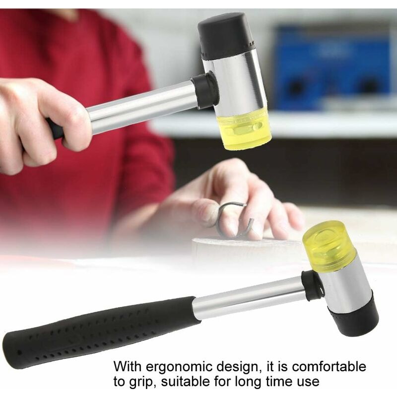 Martello a doppia faccia: testa del martello multifunzione in poliuretano, morbida e traslucida, le superfici morbide non fanno male alle mani e forniscono un colpo solido senza danneggiare la superficie di lavoro. Stabile e liscia: Manico in acciaio al carbonio forgiato di alta qualità e ad alta resistenza. L'impugnatura in acciaio sposta l'equilibrio del peso verso la testa, aumentando la forza di ogni colpo, soprattutto negli spazi di lavoro ristretti. Impugnatura in gomma antiscivolo: l'impugnatura in gomma morbida e antiscivolo offre una presa solida, zero vibrazioni e nessun rimbalzo, con design ergonomico, impugnatura comoda, adatto per un uso prolungato. Progettato per: rimovibile, resistente agli urti, antiolio, antiscivolo e non combustibile. Adatto per lavori duri e duraturi, come legno, plastica, pelle, gioielli e artigianato ecc. Fornitura: 1 martello con testa di 25 mm di diametro.