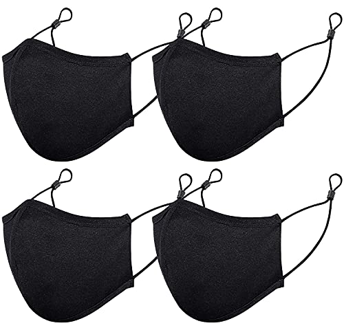 4 Pezzi Maschera Facciale in Cotone Nero Lavabile Riutilizzabile Copertura Viso con Cinturino Regolabile per Uomo Monna
