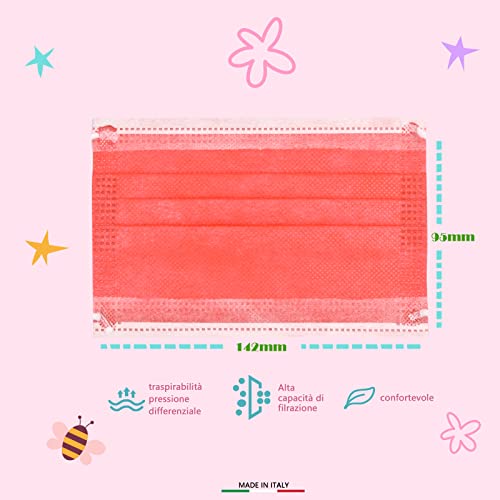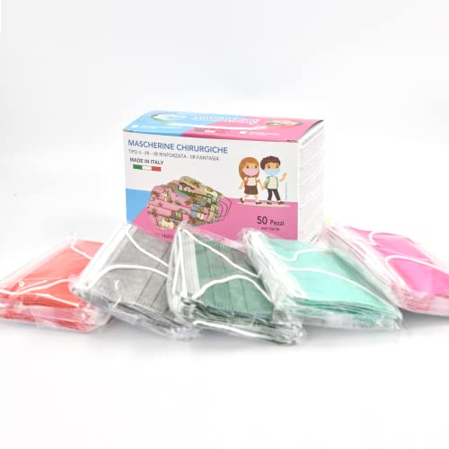 50 Pezzi Mascherine Chirurgiche Bambini MADE IN ITALY, Mascherine Bambini Colorate Certificate CE a 3 Strati Taglia Piccola con Elastico Morbido (Multicolore 2)
