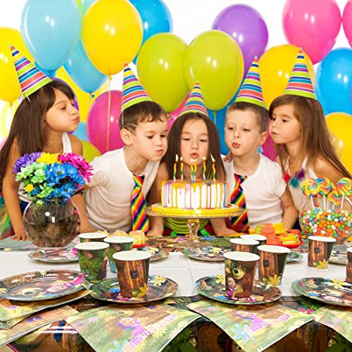42 Pezzi Masha con Orso Set di Stoviglie per Feste,Includere 10 Piatto,10 Tazze,20 Tovaglioli,Tovaglie e Triangle Flags Stoviglie per Feste Set Festa di Compleanno Decorazioni Articoli (10 Persone)