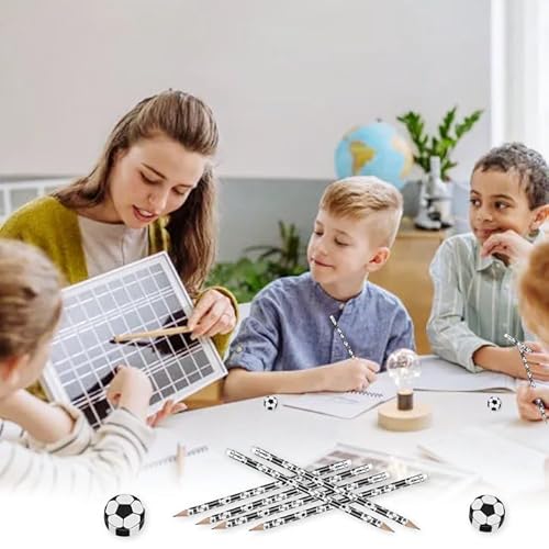 ⚽✏【Modelli di Calcio】Ci sono molti modelli di palloni da calcio stampati sulla matita, la gomma è anche scolpita dalla forma di un pallone da calcio, è perfetta per coloro che amano il calcio, per loro, questo sarà il miglior regalo di calcio che riceveranno mai. Perfetto per feste di calcio, feste a tema sportivo, eventi scolastici, feste di compleanno, concorsi, regali di Natale.