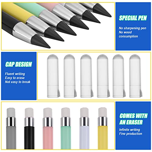 6 Pezzi Matita Infinita, Matita Eterna con 6 Punte di Ricambio, Everlasting Pencil Senza Inchiostro, Portatile Cancellabile Riutilizzabile Eterne Matita Infinita Penna per Disegno Artistico