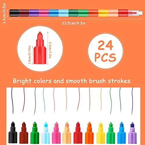 【Pastelli impilabili】: puoi ottenere 24 pastelli impilabili, ogni pastello è composto da 12 piccoli pastelli singoli di diversi colori, la lunghezza totale è di circa 23,5 cm / 9,3 pollici, ogni piccolo pastello è di 1,9 cm / 0,74 pollici, ogni pastello può essere facilmente rimosso e riimpilato secondo il tuo ordine di colore o lunghezza preferito.