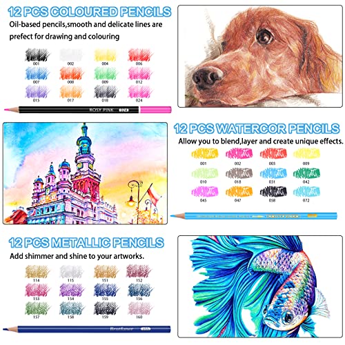 QUALITÀ DELL'ARTISTA & ALTE PRESTAZIONI - Le matite colorate professionali sono realizzate in materiale ecologico, che rende il nucleo di piombo extra liscio, durevole e resistente alla rottura, facile da sfumare, sfumare e disegnare.Matite acquarellabili Conformi alla rigorosa ASTM D-4236, prive di acidi, non tossico e inodore, adatto per adulti, bambini, studenti, principianti, artisti. Il set disegno professionale piacerà sicuramente!