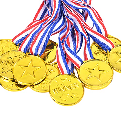 12 Pezzi Medaglie Premiazioni Oro plastica medaglie vincitrici Medaglie con Nastro premi Medaglie per Bambini per la Scuola Giornata dello Sport o Mini Eventi Olimpici