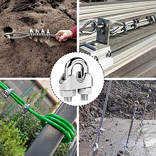 16 Pezzi Clip per Fune Metallica, Morsetto per Fune Metallica, Cavo Morsetto per Bullone a U, M3 M6 Acciaio Inossidabile Stringere fermamente Morsetti Cavo Acciaio per Giardino, Ancoraggi (Argento)