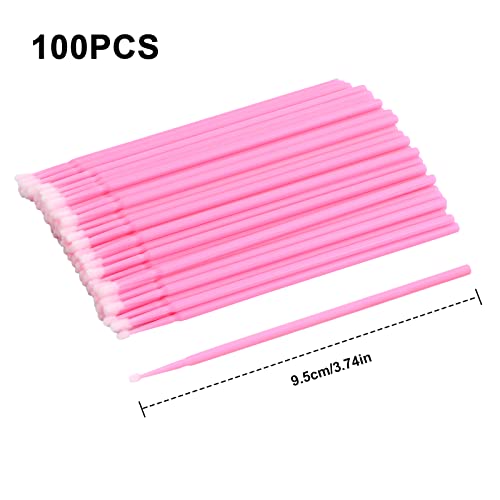100 Pezzi Micro Spazzole Bacchette Micro Applicatori a Pennello, Monouso Ciglia Microbrush per Extension Ciglia Rimozione, Trucco, Nail Art, Pittura (Rosa)