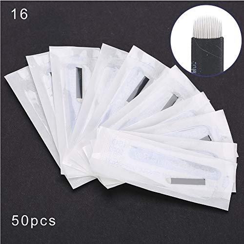 50 pezzi aghi per microblading sopracciglia per tatuaggio, lame per tatuaggio aghi per sopracciglia per penna per microblading(16 pin)