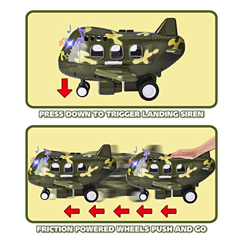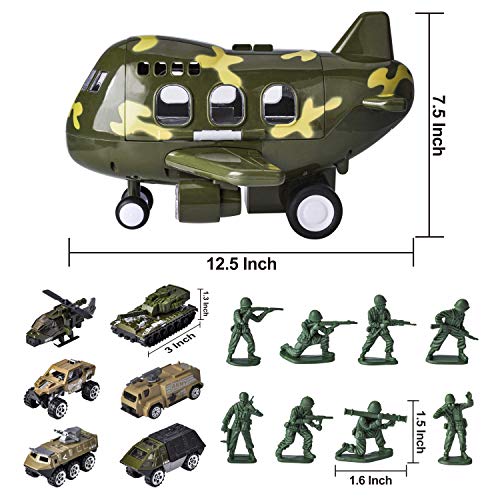 15 pezzi Military Friction Power ed Transport Airplane Toy con Diecast Military Cars include 6 giocattoli da combattimento militari e personaggi da uomo