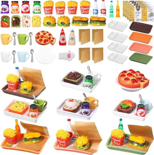 Design realistico: il toast in miniatura delle bambole,pane,marmellata,piatto,tazza,cucchiaio,pizza di frutta delle bambole,piatto,Burger e patatine in miniatura presentano un design elaborato e colori vivaci, realizzando una serie di cibo e decorazioni di giochi in miniatura di giocattoli in miniatura;