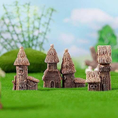 4 Pezzi Mini villaggi Case in diversi design, vivido e artistico con artigianato raffinato, perefetto per paesaggi fai - -te e giardinaggio decorativo per arredamento giardino, patio e desktop.