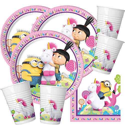 Set di 52 pezzi Minions - Unicorno Fluffy - Piatti bicchieri, tovaglioli per 16 bambini